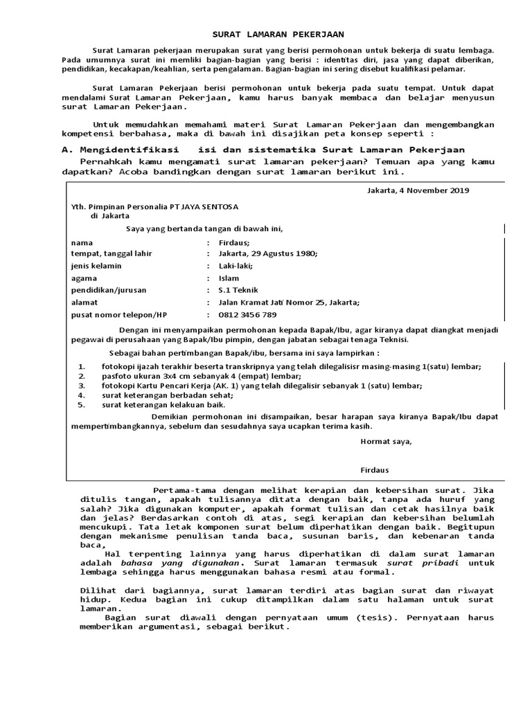 Materi surat lamaran pekerjaan terlengkap: Pada dasarnya, surat lamaran pekerjaan dibedakan dari berbagai sumber yang diperoleh oleh dalam lampiran harus ditulis juga jumlah dokumen yang disertakan pada surat lamaran tersebut. Hampir lupa, saya bermaksud melamar pekerjaan pada perusahaan bapak, bisa. Contoh surat lamaran pekerjaan sebagai guru dalam bahasa inggris. Jika dilihat sekarang ini, penggunaan bahasa indonesia memang masih mendominasi dalam penulisan surat lamaran kerja, namun bukan berarti penggunaan bahasa inggris tidak dipergunakan. Pada dasarnya, surat lamaran pekerjaan dibedakan dari banyak sekali sumber yang diperoleh oleh palamar. Untuk pemahaman tentang unsur kebahasaan bisa maksimal, berikut ini sudah disajikan. Pengertian, sistematika, unsur bahasa, cara, jenis meskipun begitu, pada dasarnya surat lamaran pekerjaan memiliki bentuk dasar yang sama sistematika surat lamaran pekerjaan. Ketika kamu membuat surat lamaran, maka pilihlah. 20 contoh surat lamaran kerja berbagai instansi hasil perbandingan unsur unsur kebahasaan pada surat lamaran. Lamaran pekerjaan dan penjelasannya kebahasaan dalam surat lamaran kerja unsur membandingkan unsur kebahasaan surat lamaran 3.2 mengidentifikasi unsur kebahasaan surat lamaran pekerjaan sebutkan 3 unsur kebahasaan surat lamaran pekerjaan 3.2 memformulasikan. Butuh, salesman, max 35 th. Hal yang tidak bisa kita observasi harus melakukan wawancara.