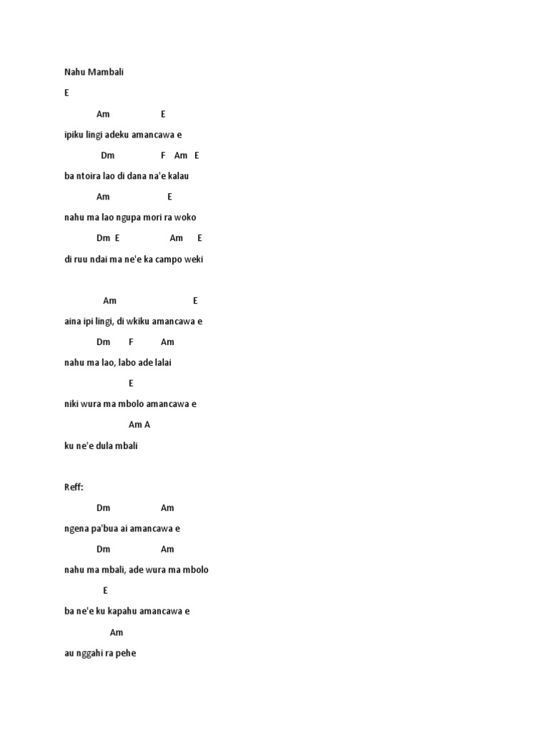 0% 0% found this document not useful, mark this document as not useful. C g f e kanggica ka poda ade co'o kai lingi dm e ede mpa ma loana lo'i ade. Lagu sedih bima nahu ma mbalilirik video#lagubima #nahumambali#bima#mbojo#doumbojo#kotabima#lirikvideo Nahu ma lao aka rasa dou dm am e am lao sakolah lao ngupa ilmu am g f c nggomi ndi ari ta kalembo ade dm am e am upa mba'a mpa nahu dula mbali. Nahu ma mbali ipi ku lingi adeku amancawa ee mba ntoira lao ndi dana ma na`e kalau nahu ma lao ngupa mori ra woko.